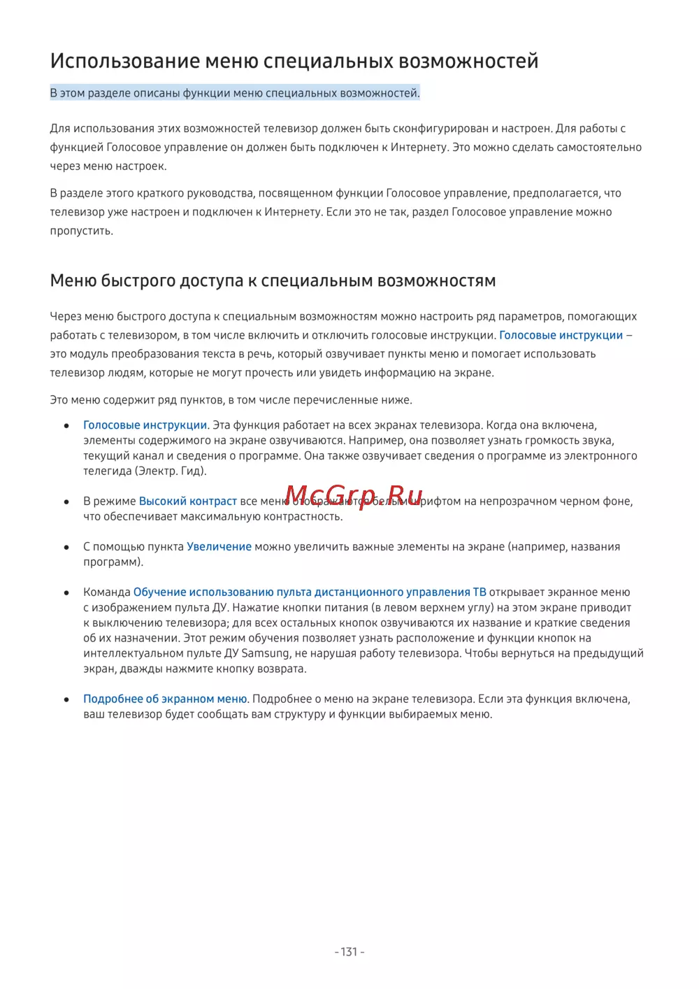 Samsung UE49MU6103UXRU черный — функции меню специальных возможностей для телевизоров [137/158]