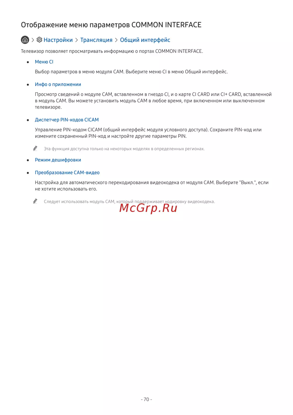 ![Samsung UE49MU6103UXRU черный [76/158] Отображение меню параметров common interface](/views2/1349536/page76/bg4c.png)