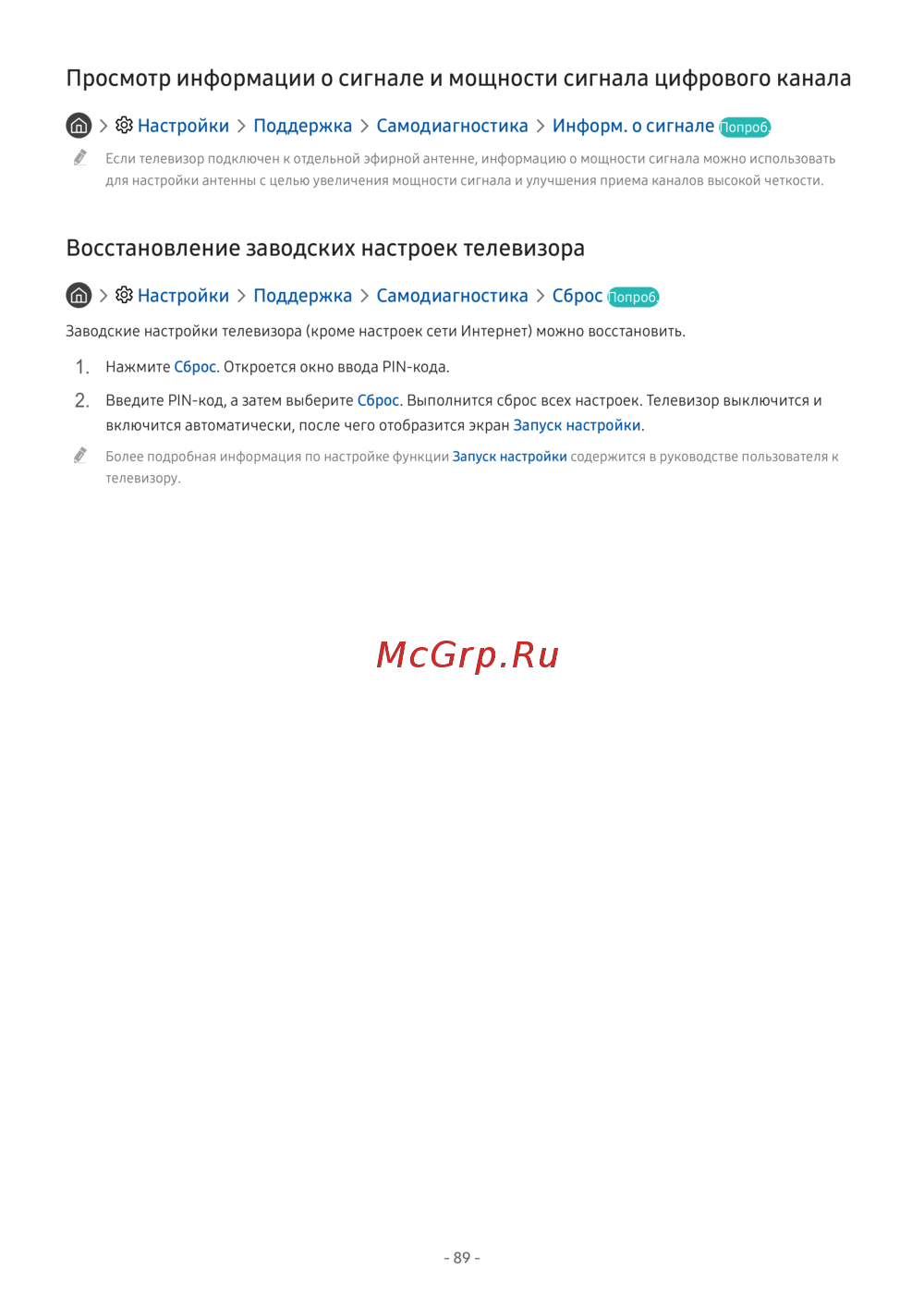 ![Samsung UE49MU6103UXRU черный [95/158] Просмотр информации о сигнале и мощности сигнала цифрового канала](/views2/1349536/page95/bg5f.png)
