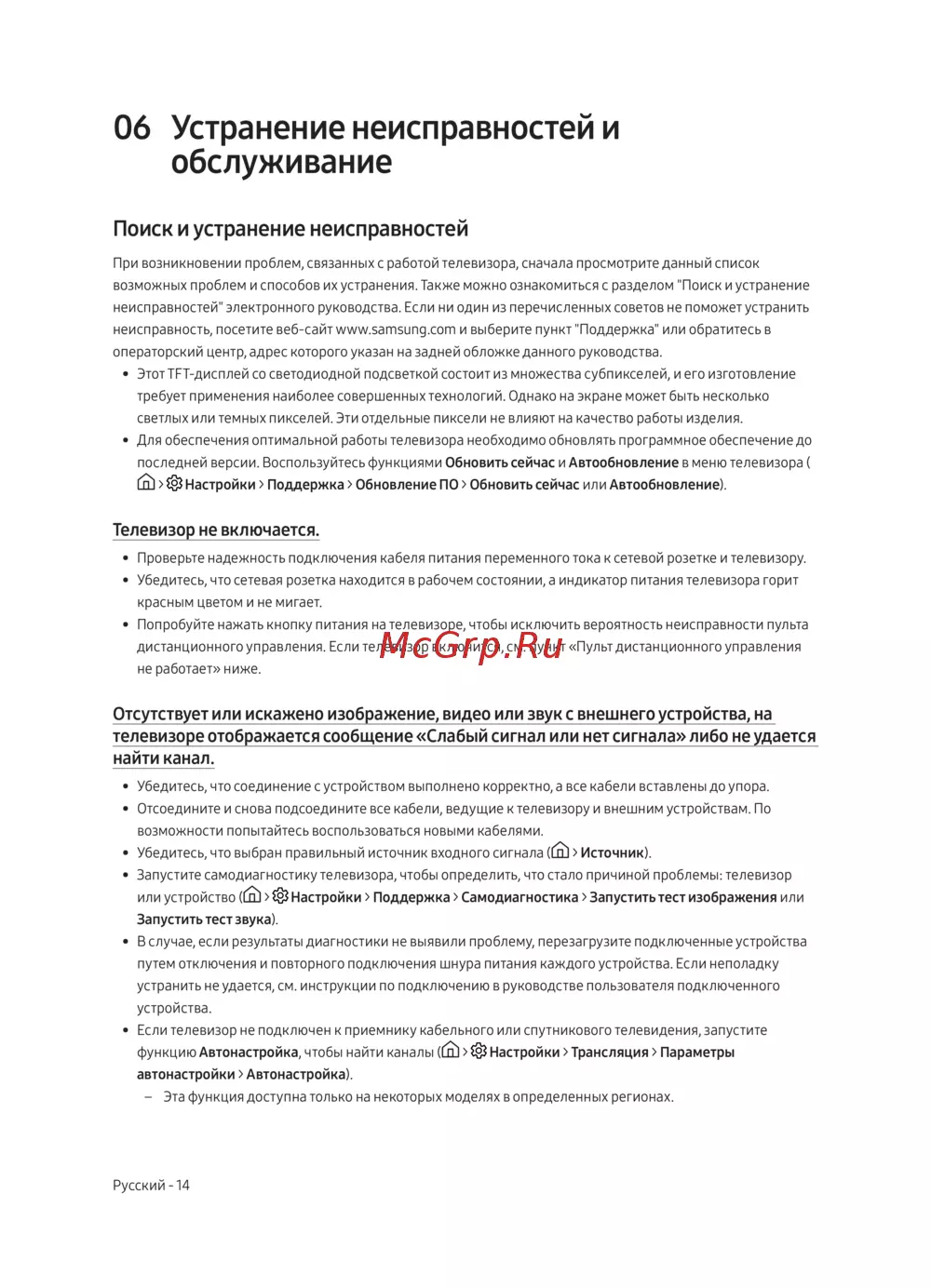 ![Samsung UE49MU6303UXRU [14/92] Устранение неисправностей и обслуживание](/views2/1349602/page14/bge.png)