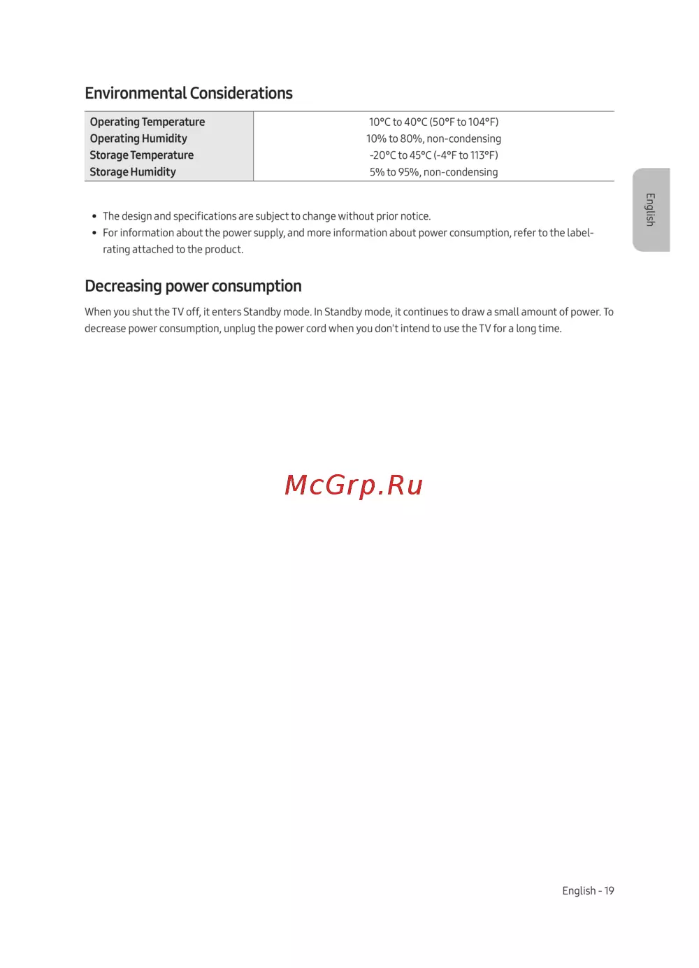 Samsung UE49MU6303UXRU [41/92] Operating temperature operating humidity storage temperature storage humidity