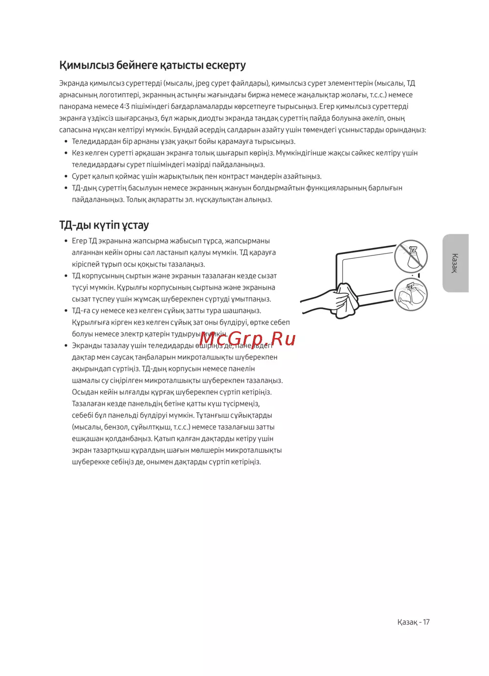 - Сақтық шарасы теледидардың құлап түсуіне жол бермеу үшін оны қабырғаға бекіту p.75