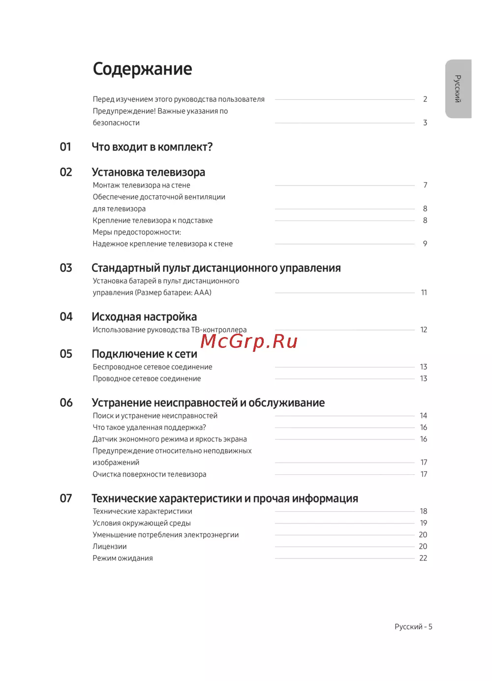 - Обеспечение достаточной вентиляции для телевизора p.8