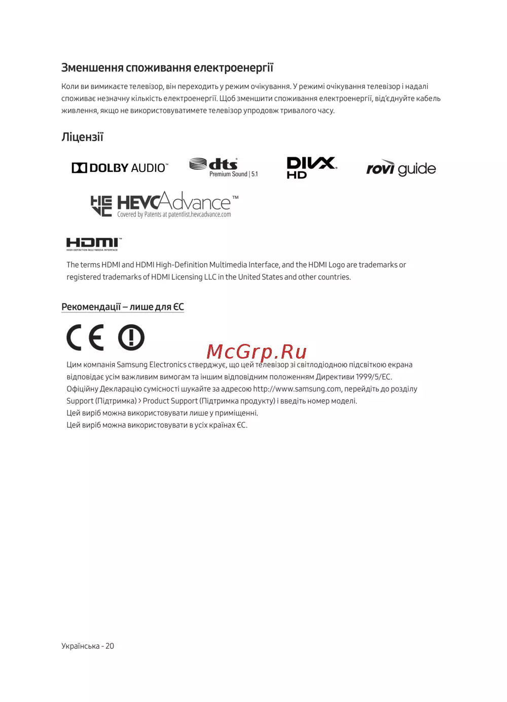 Офіційну Декларацію сумісності шукайте за адресою http://www.samsung.com, перейдіть до розділу