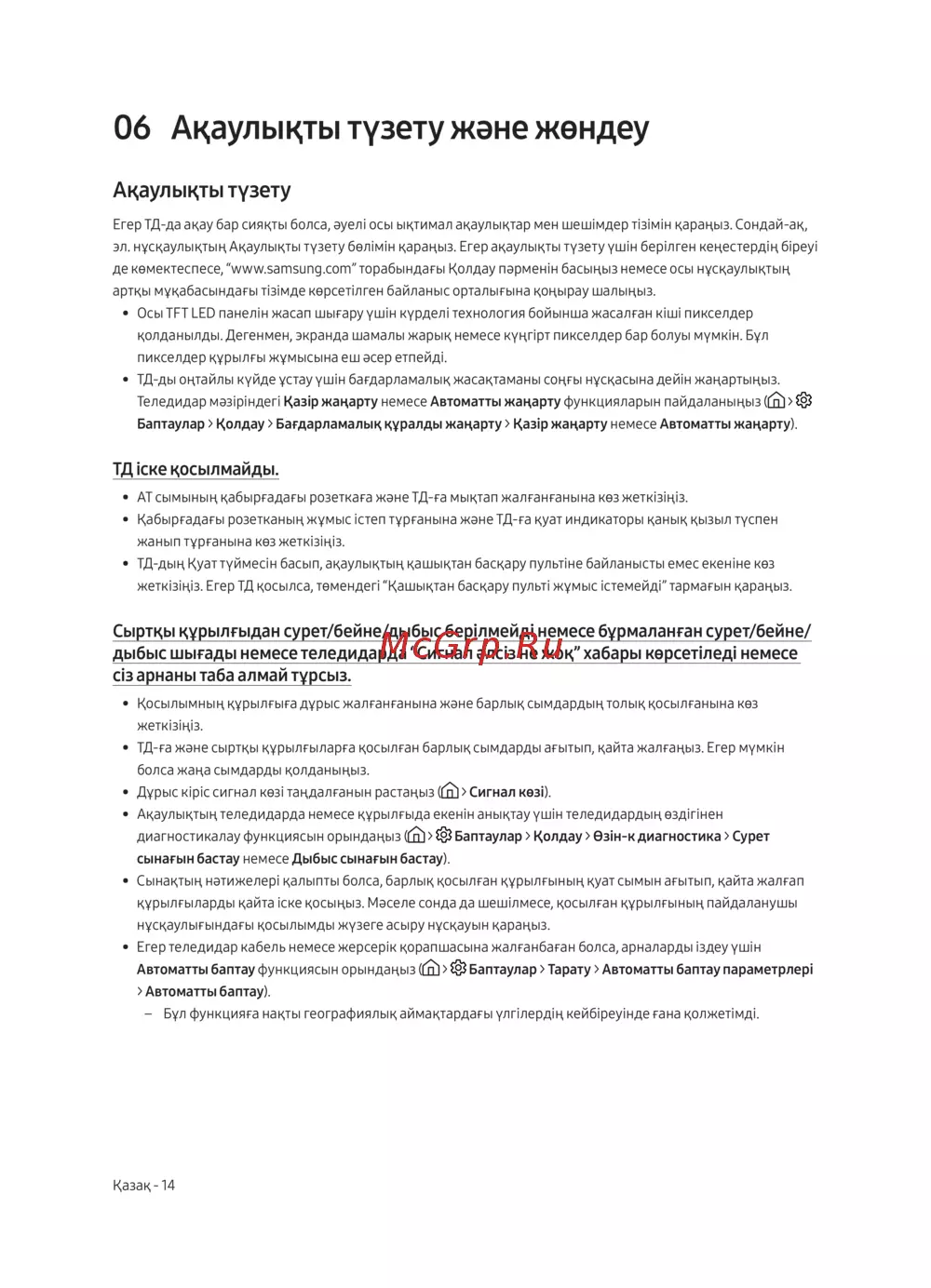 эл. нұсқаулықтың Ақаулықты түзету бөлімін қараңыз. Егер ақаулықты түзету үшін берілген кеңестердің біреуі