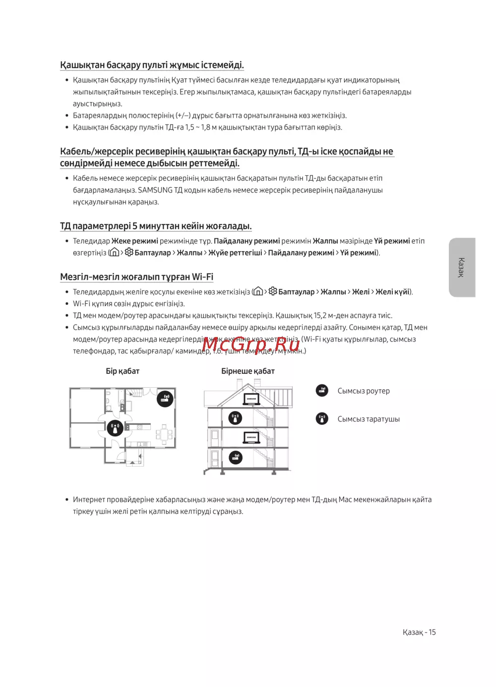 • ТД мен модем/роутер арасындағы қашықтықты тексеріңіз. Қашықтық 15,2 м-ден аспауға тиіс.