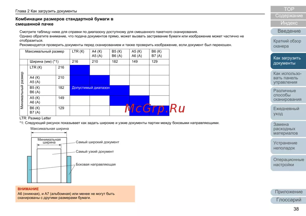 узкие документы партии между боковыми направляющими.