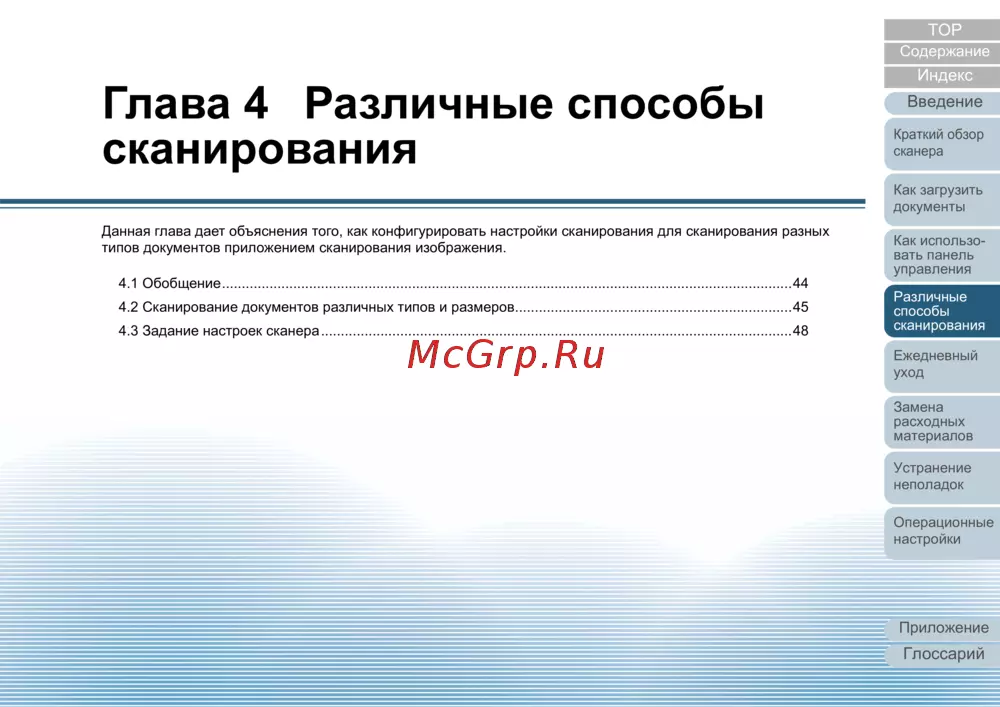 4.2 Сканирование документов различных типов и размеров......................................................................45