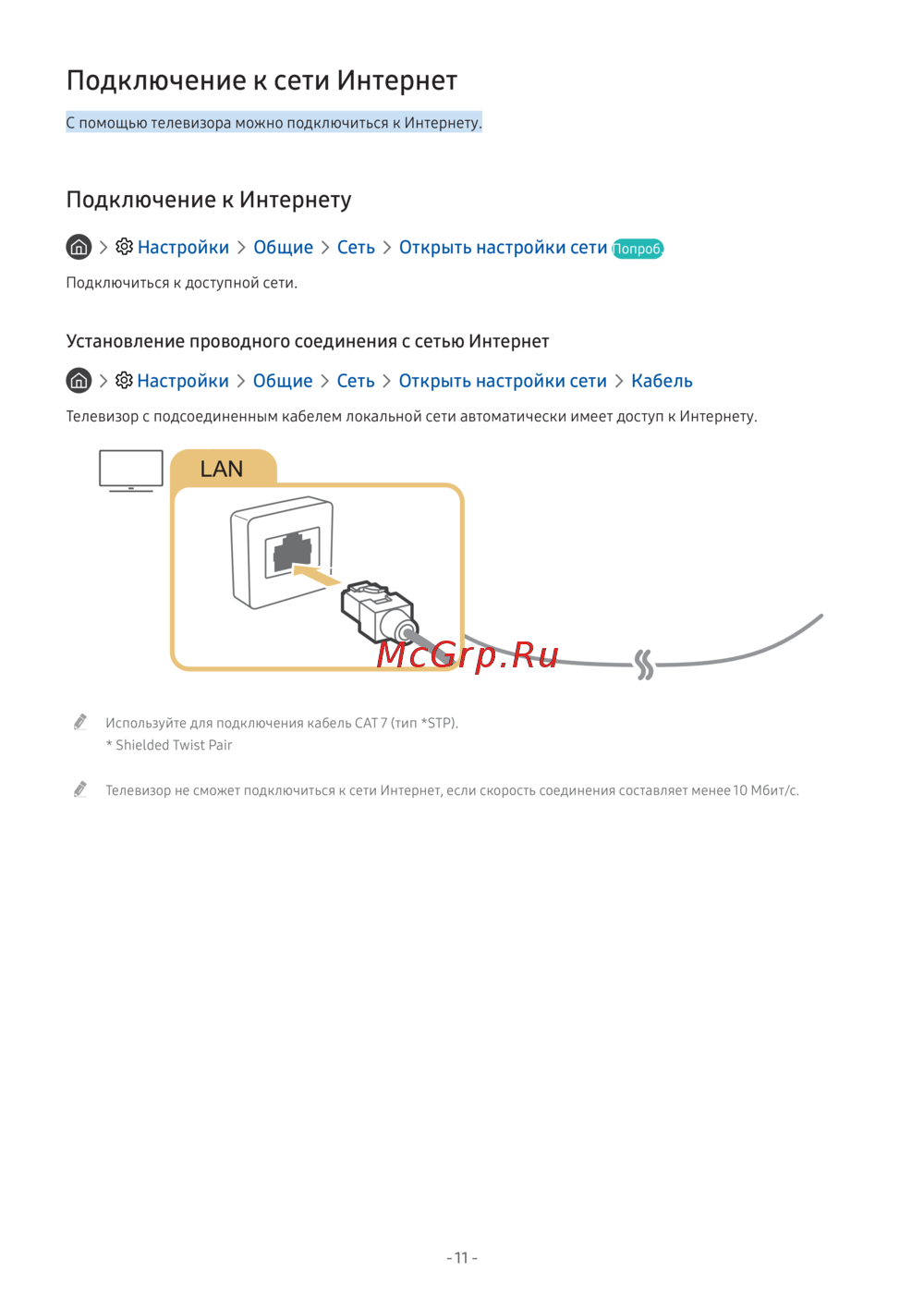 Узнайте, как подключить телевизор к Интернету через настройки сети. Инструкция по использованию кабеля CAT 7 и требования к скорости соединения.
