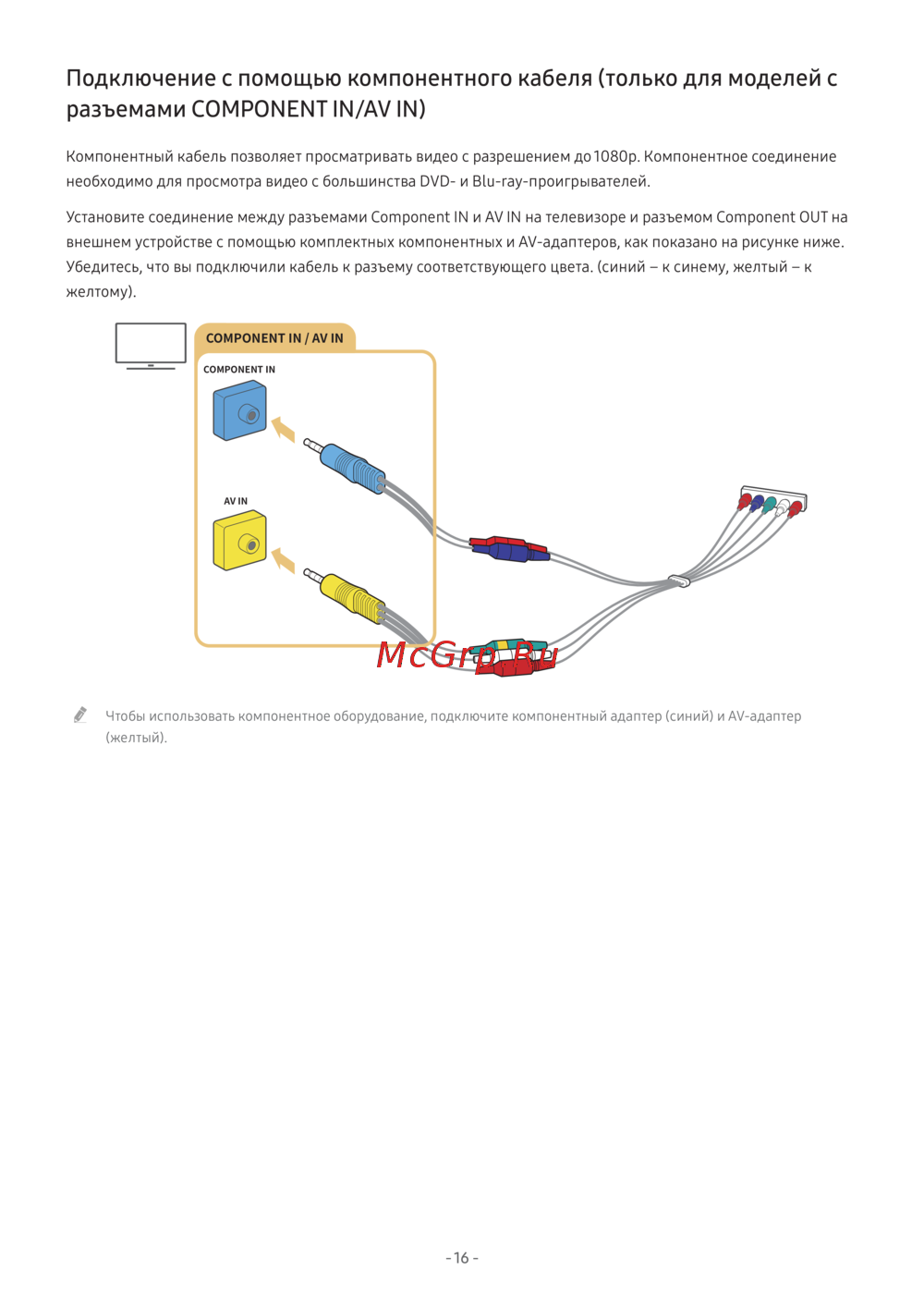 " Чтобы использовать компонентное оборудование, подключите компонентный адаптер (синий) и AV-адаптер