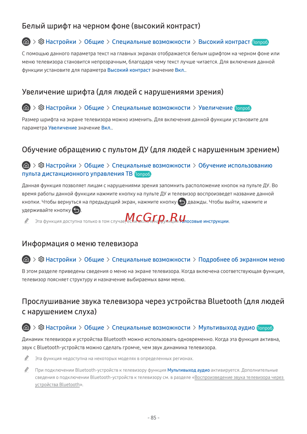 ![Samsung UE49M6503AUXRU [91/155] Увеличение шрифта для людей с нарушениями зрения](/views2/1274167/page91/bg5b.png)