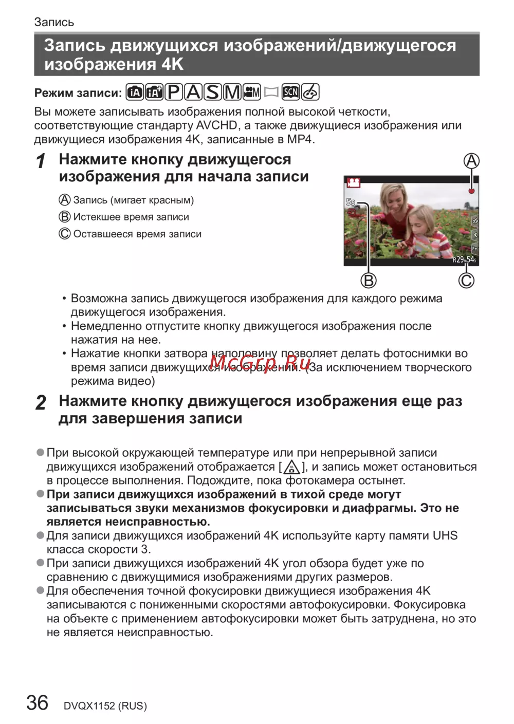 - Запись движущихся изображений движущегося изображения 4k p.36