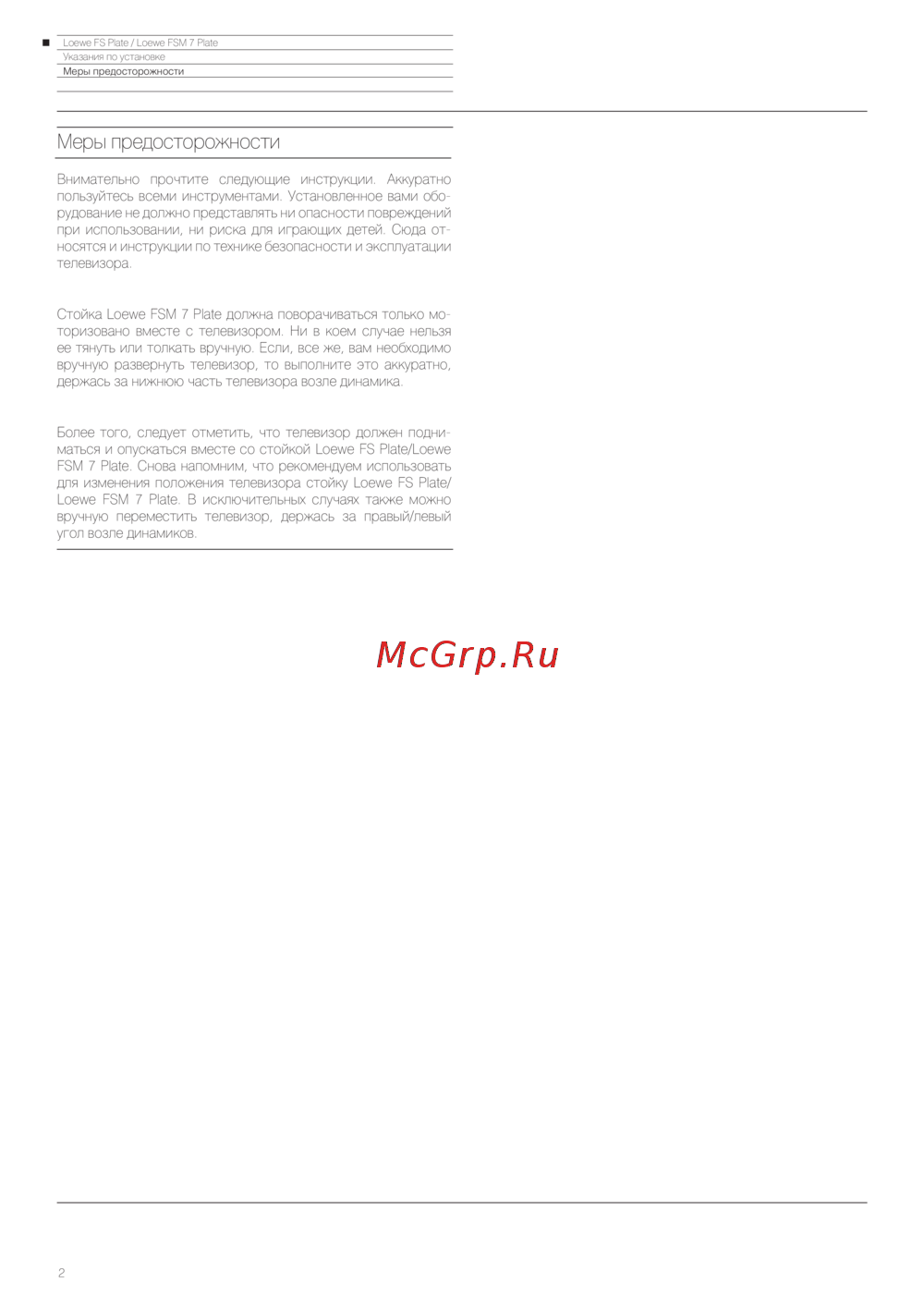Loewe FS Plate 55-65 72670S00 — установка и безопасность телевизионных стоек: важные рекомендации [2/24]