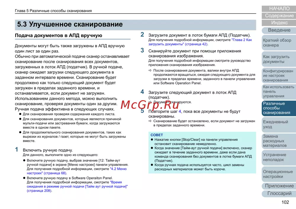загруженных в лоток АПД (податчик). В ручной подаче,
