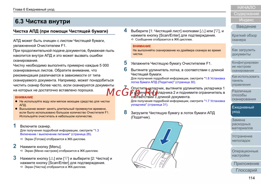 8 Загрузите Чистящую бумагу в лоток бумаги АПД