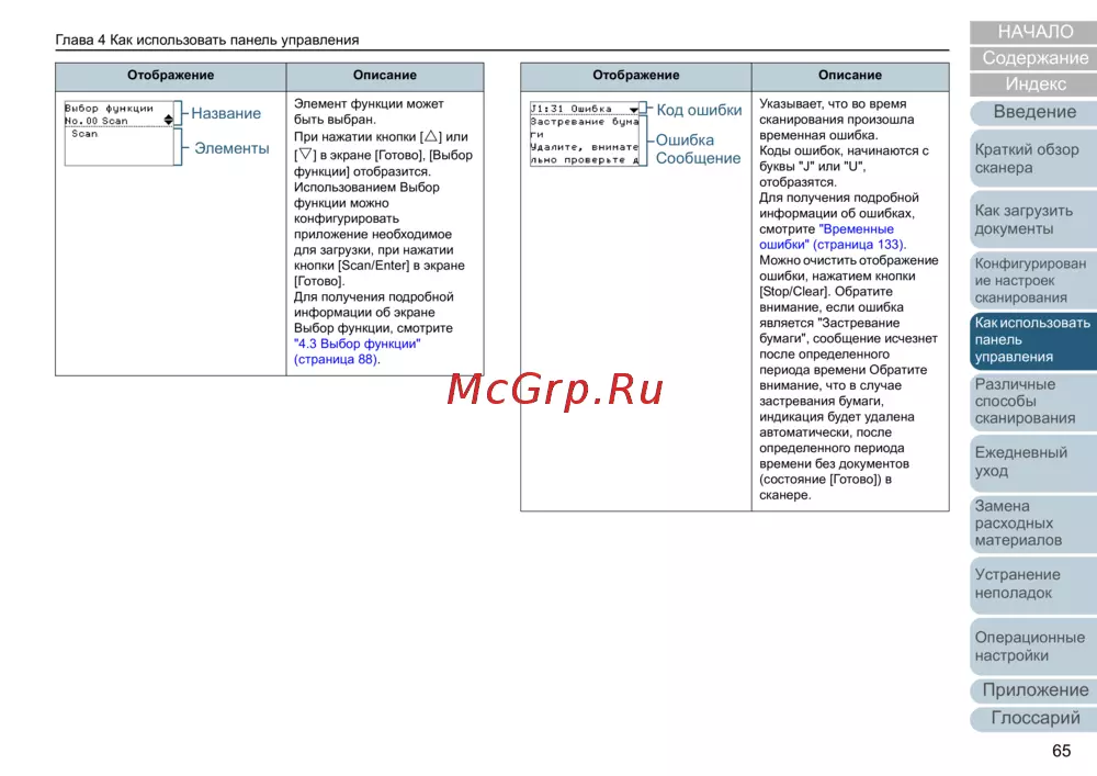 ![Fujitsu fi-7180 PA03670-B001 Белый, черный [65/235] Глава 4 как использовать панель управления](/views2/1347633/page65/bg41.png)