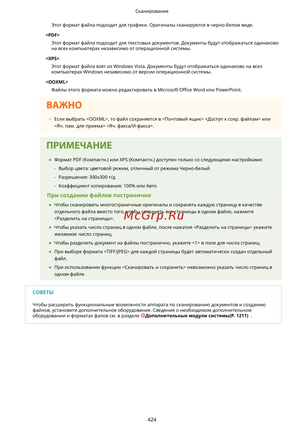 Canon imageRUNNER ADVANCE C3520i MFP 1494C006 — обзор форматов файлов для сканирования и документов [436/1803]