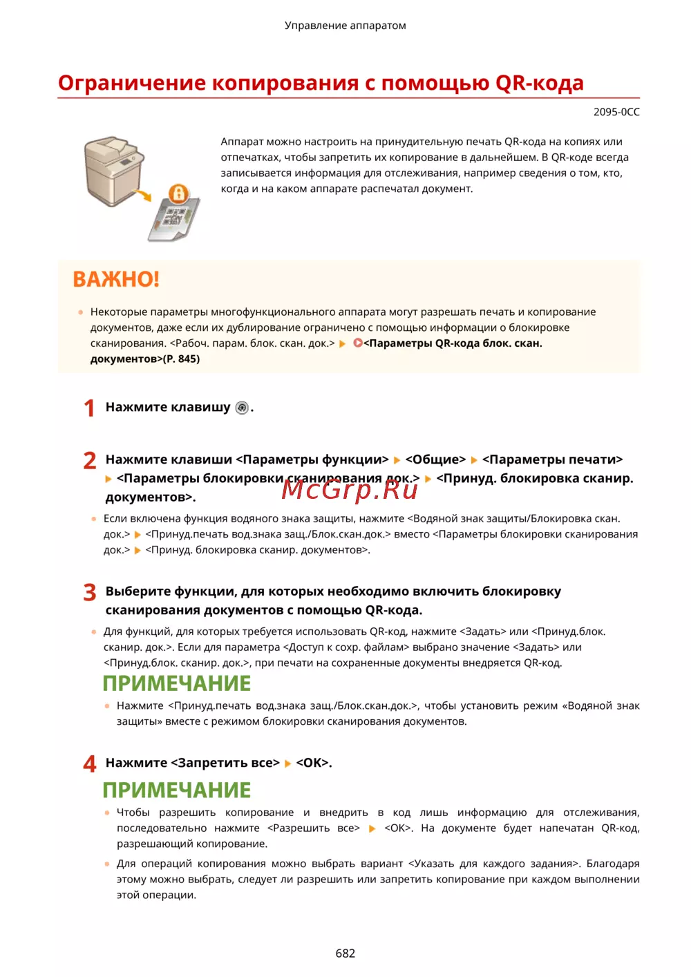 Canon imageRUNNER ADVANCE C3520i MFP 1494C006 — настройка ограничения копирования с помощью QR-кода [694/1803]