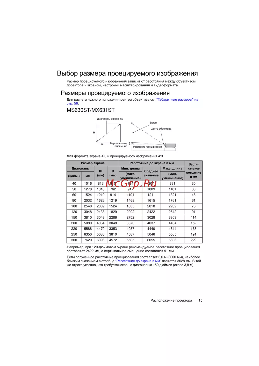 Benq MW632ST 9H.JE277.13E БЕЛЫЙ — как выбрать размер проецируемого изображения для проектора [15/61]