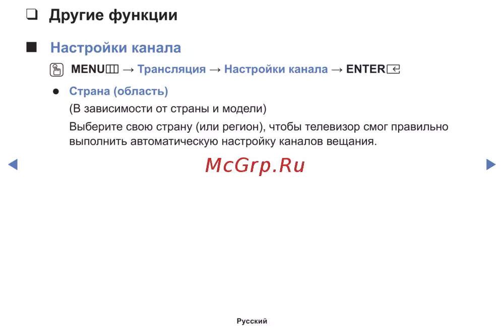 - Изм номера канала в зависимости от страны и модели p.30