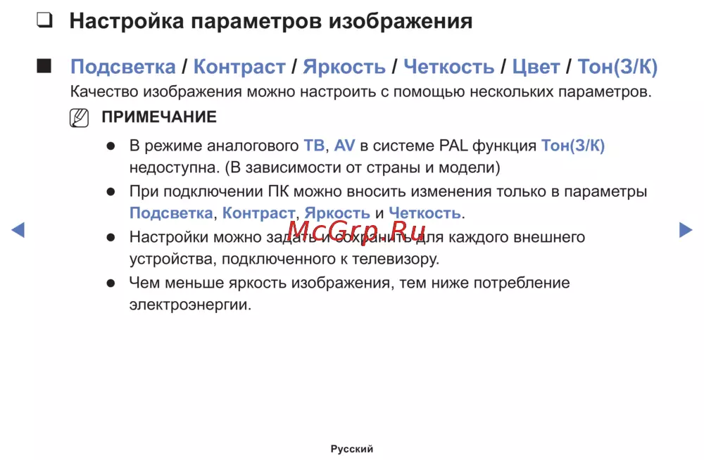 - Подсветка контраст яркость четкость цвет тон з к p.38