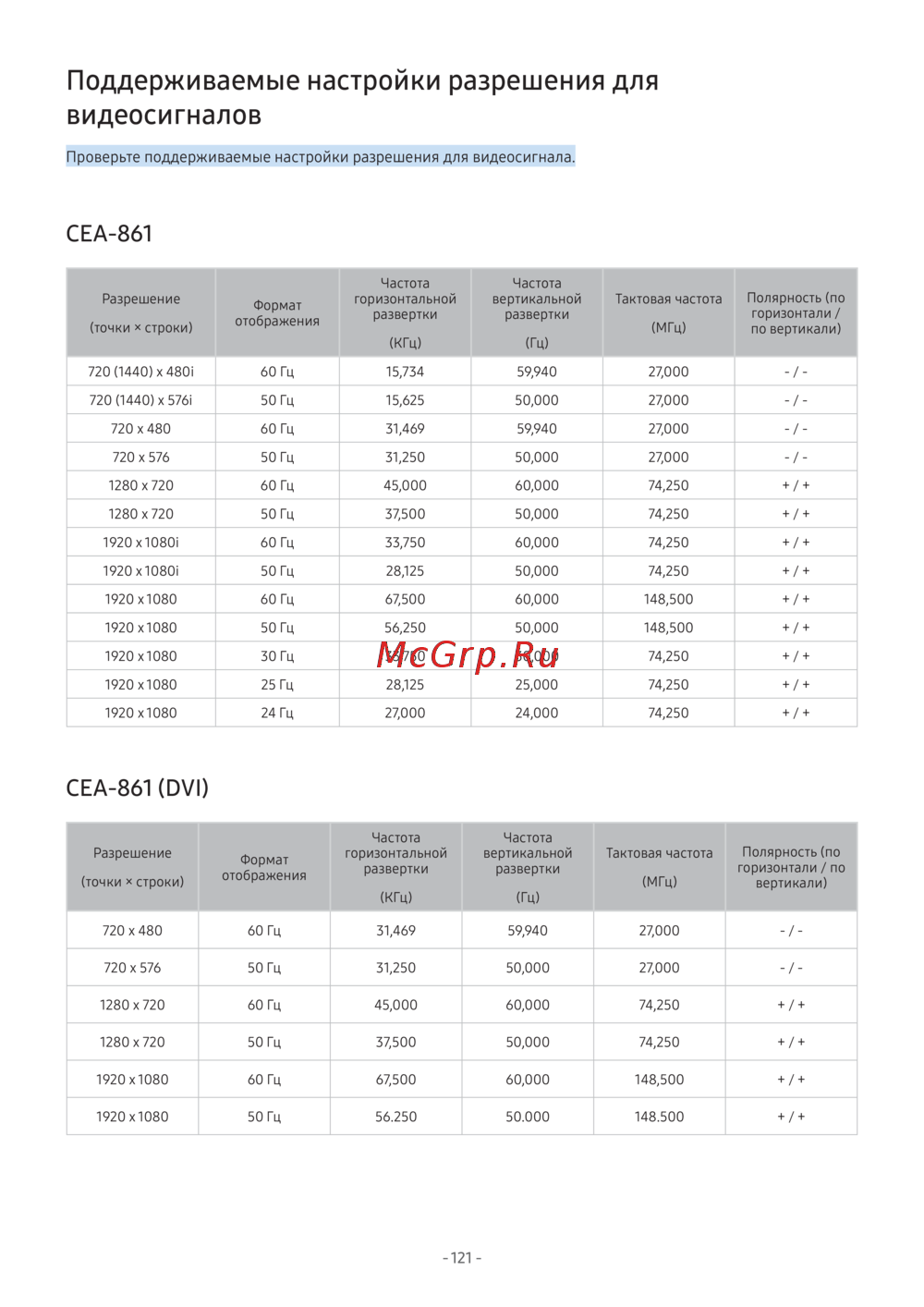 Samsung UE55M6550AU Black [127/155] Поддерживаемые настройки разрешения для видеосигналов
