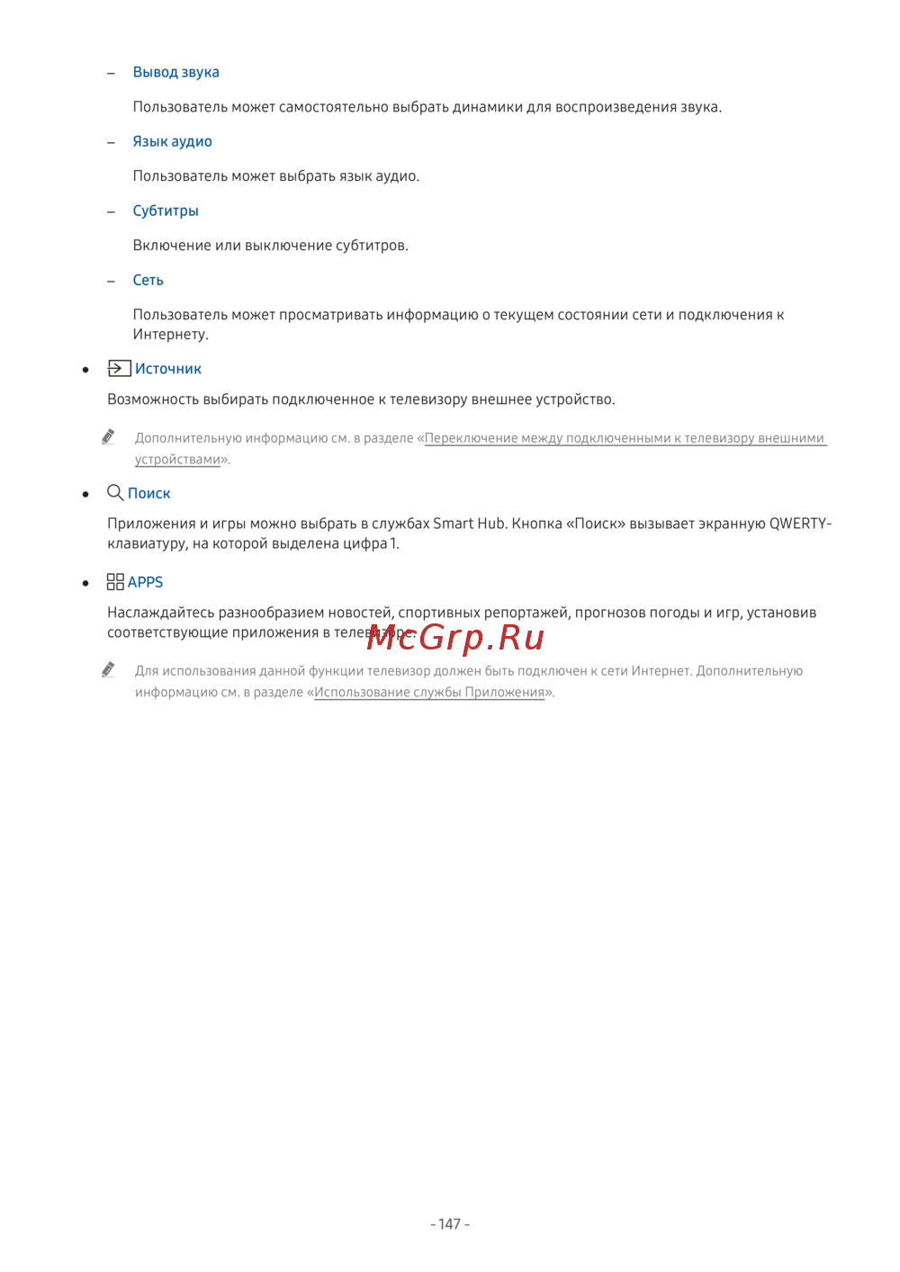 - Нажав кнопку на пульте ду можно просматривать интернет страницы и скачивать приложения с p.151