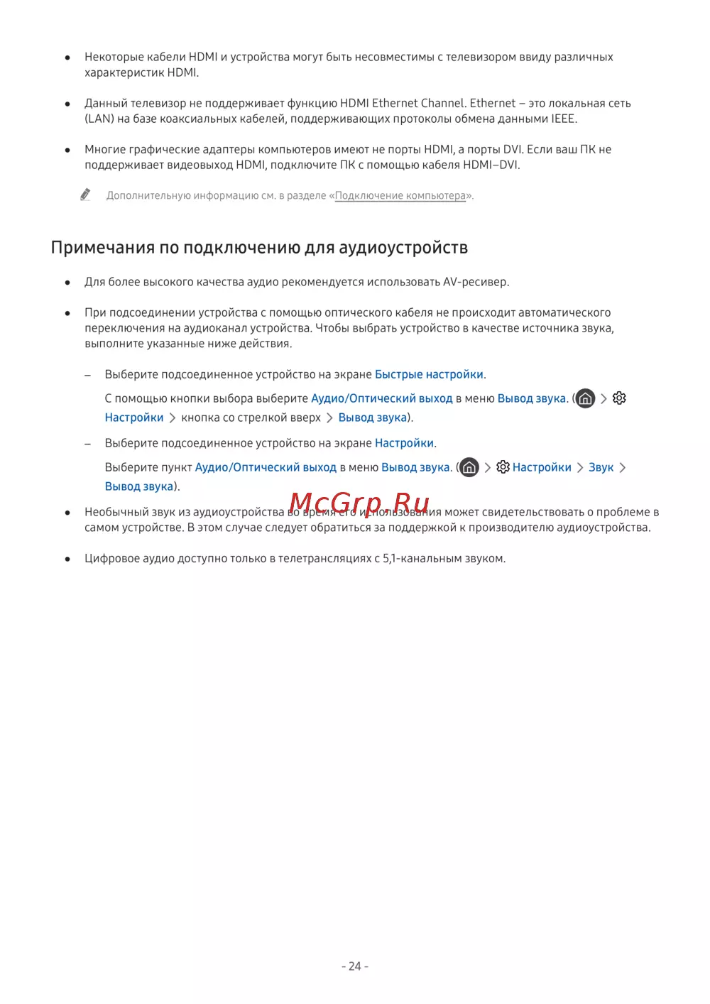 Samsung UE55M6550AU Black [30/155] Примечания по подключению для аудиоустройств
