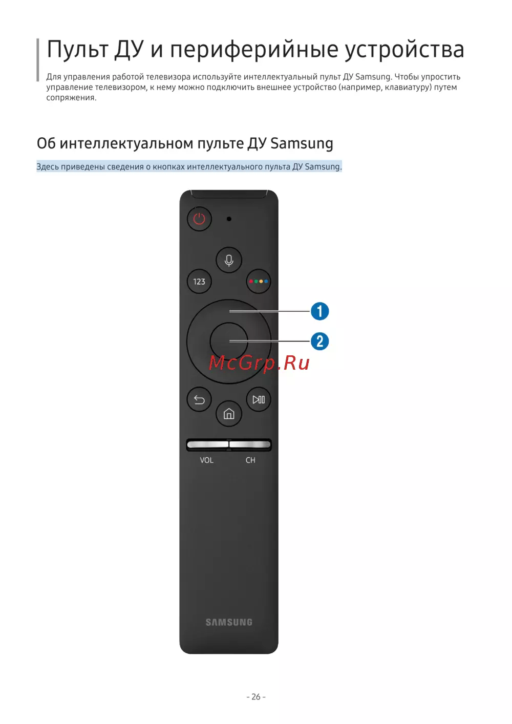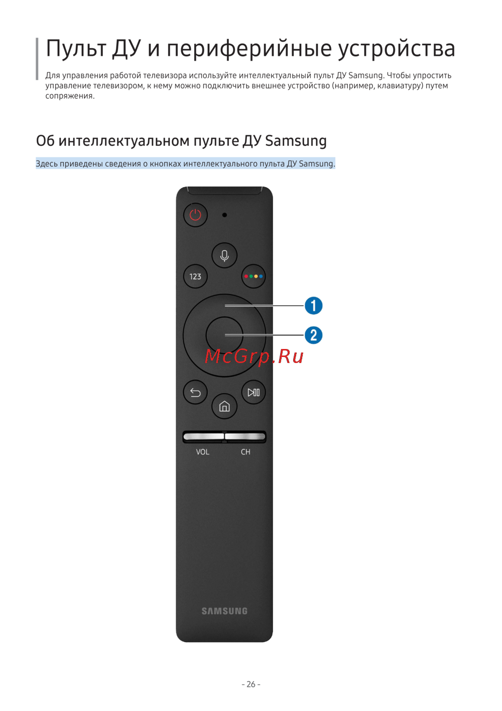 Для управления работой телевизора используйте интеллектуальный пульт ДУ Samsung. Чтобы упростить