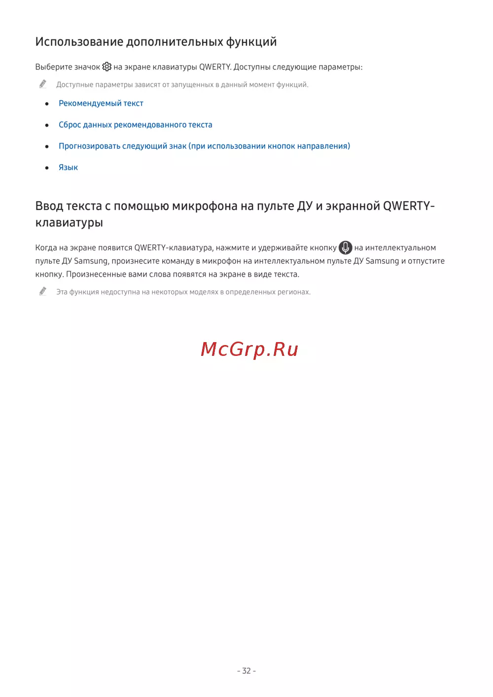 Ввод текста с помощью микрофона на пульте ДУ и экранной QWERTY-