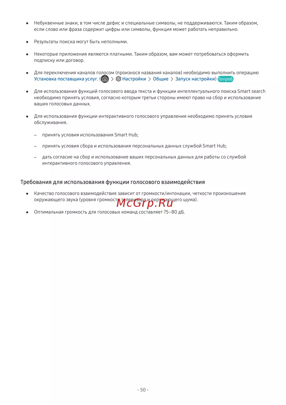 Samsung UE55M6550AU Black — условия использования голосового управления и интеллектуального поиска [56/155]