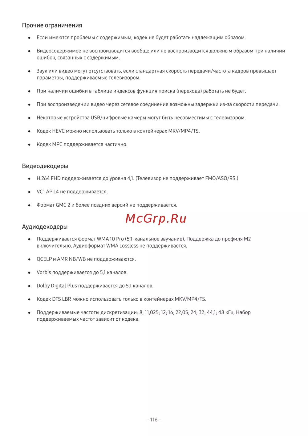● H.264 FHD поддерживается до уровня 4,1. (Телевизор не поддерживает FMO/ASO/RS.)
