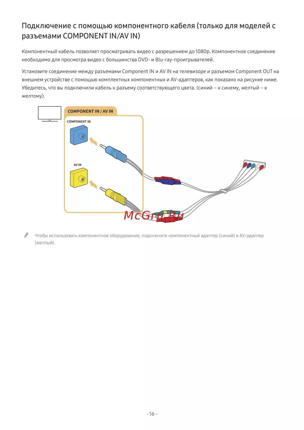 " Чтобы использовать компонентное оборудование, подключите компонентный адаптер (синий) и AV-адаптер