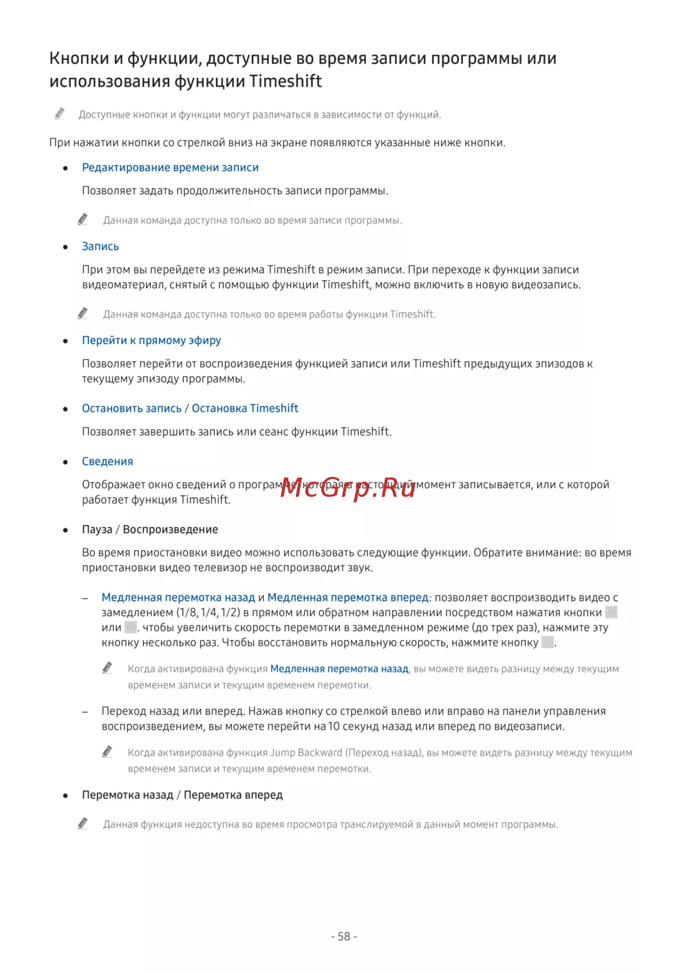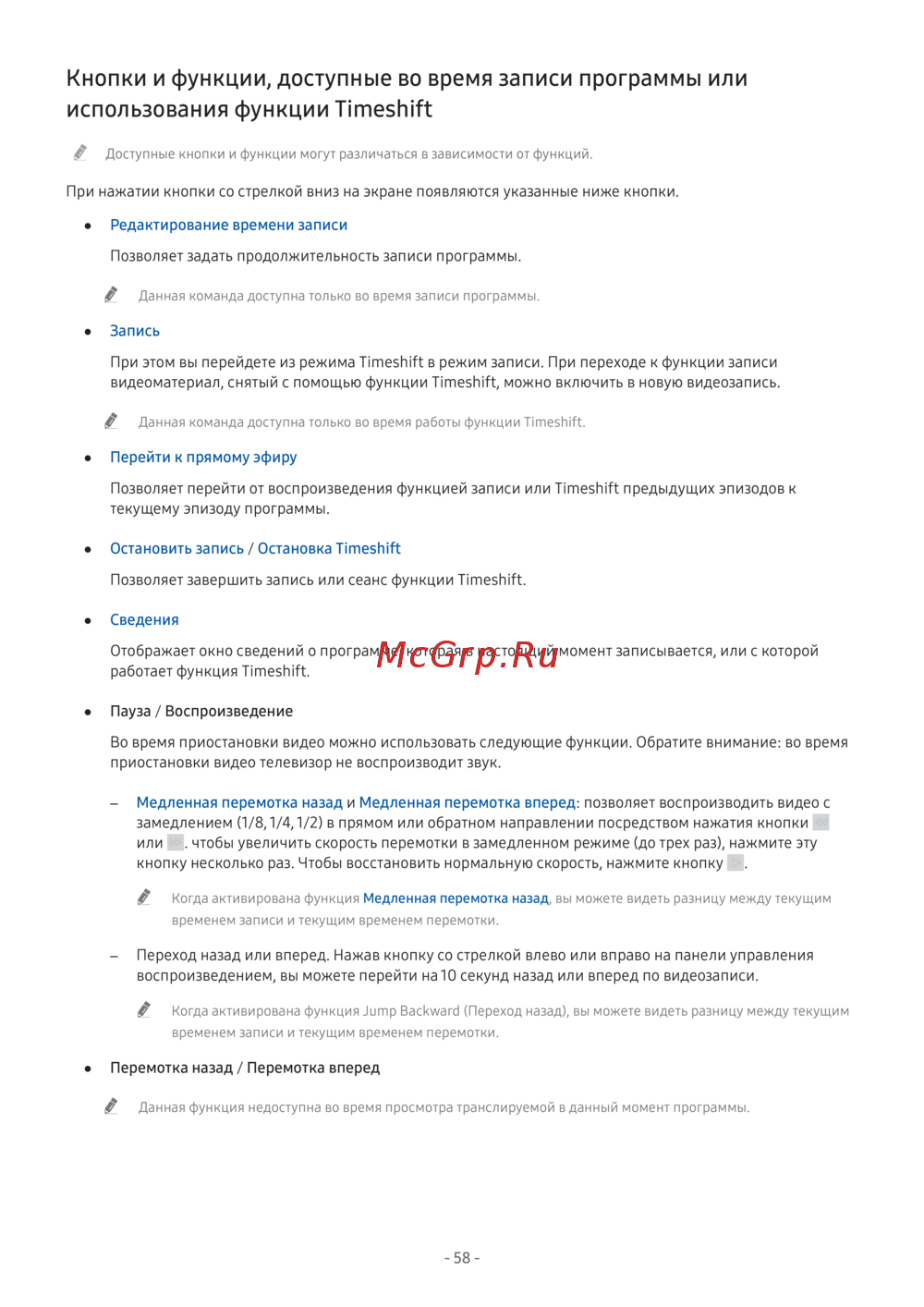 Samsung UE43M5513AU [64/155] Кнопки и функции доступные во время записи программы или использования функции timeshift
