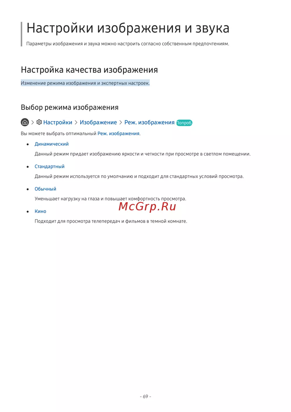 Данный режим придает изображению яркости и четкости при просмотре в светлом помещении.