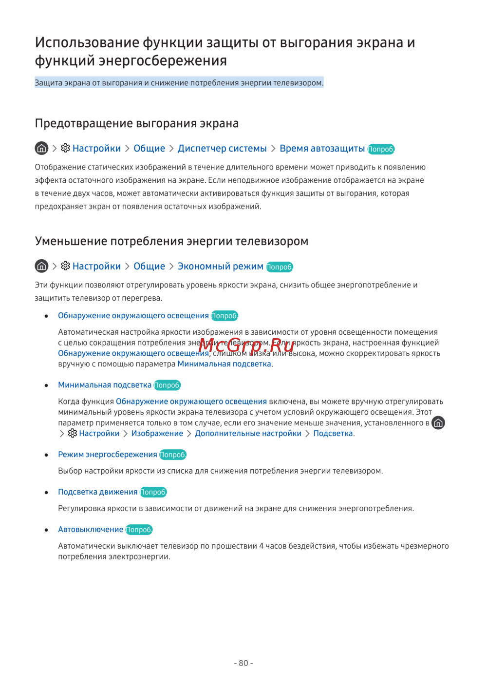 - Использование функции защиты от выгорания экрана и функций энергосбережения p.4