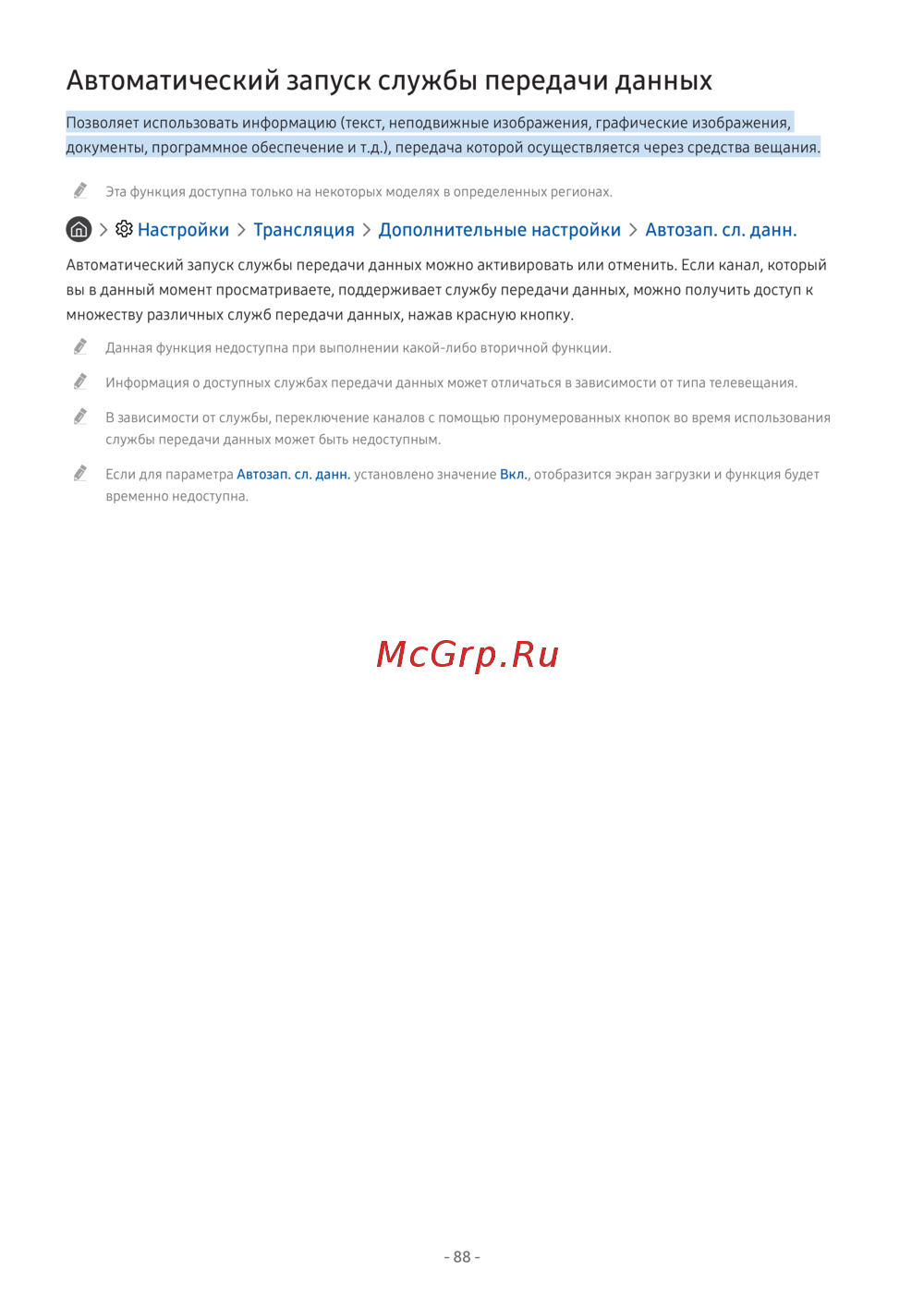 " Информация о доступных службах передачи данных может отличаться в зависимости от типа телевещания.