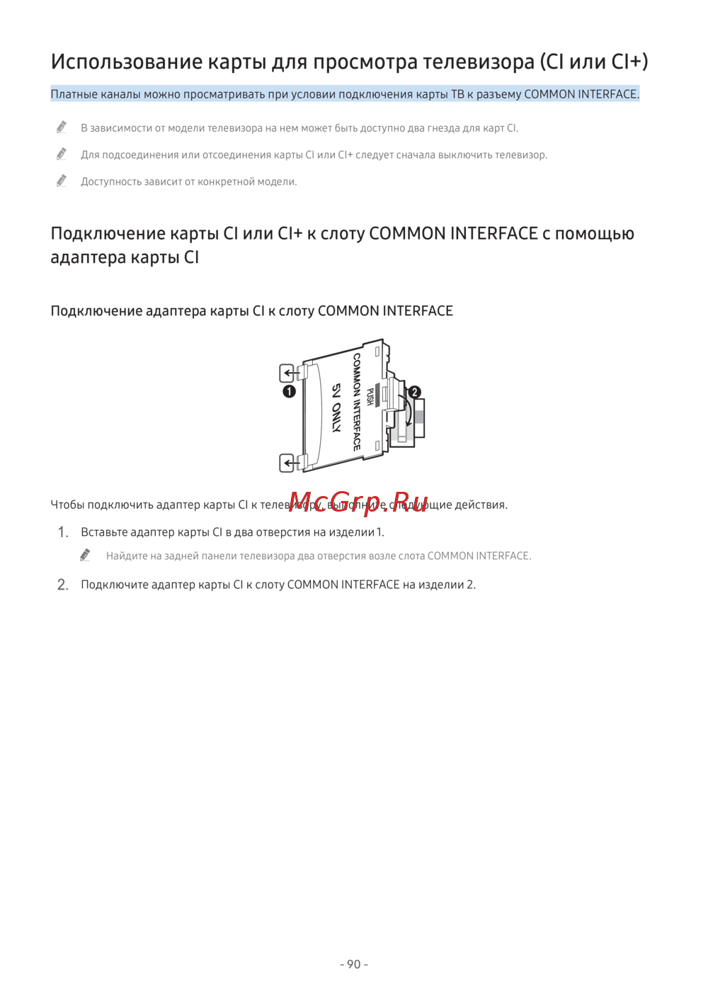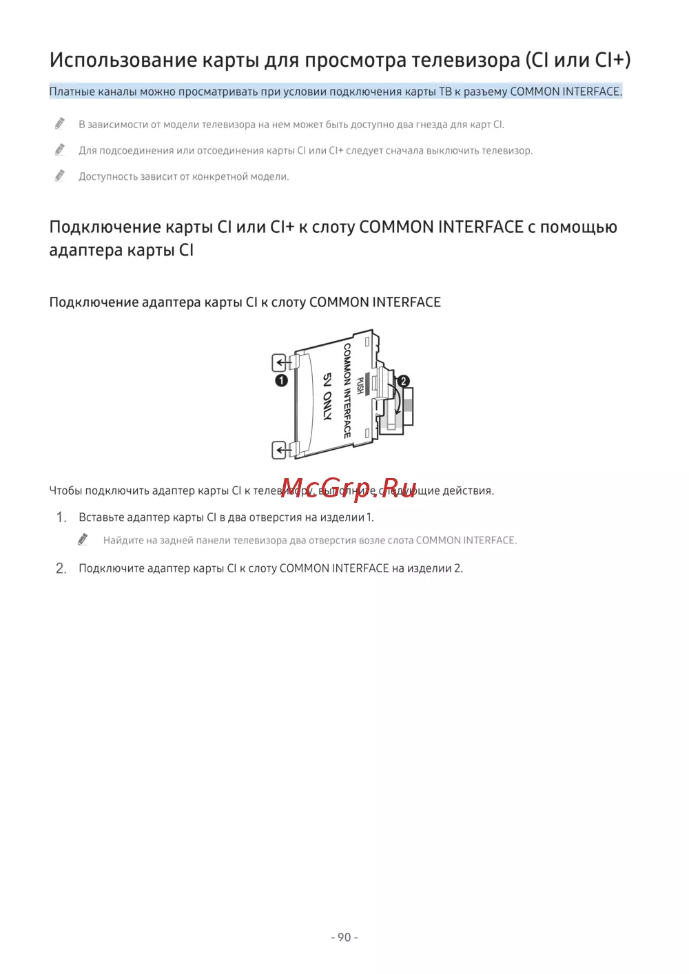 " В зависимости от модели телевизора на нем может быть доступно два гнезда для карт CI.