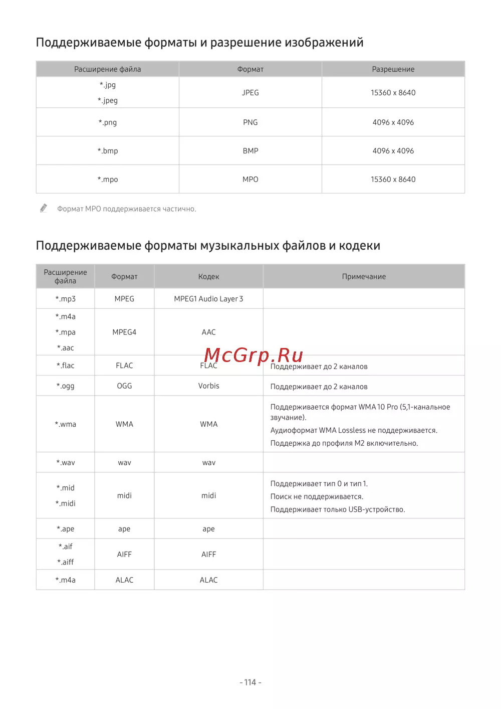 Samsung UE55M6500AU Black [120/155] Поддерживаемые форматы музыкальных файлов и кодеки