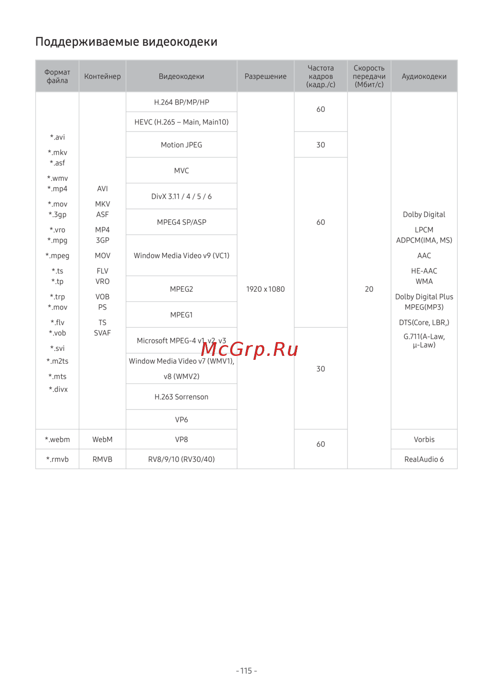 Samsung UE55M6500AU Black [121/155] Поддерживаемые видеокодеки