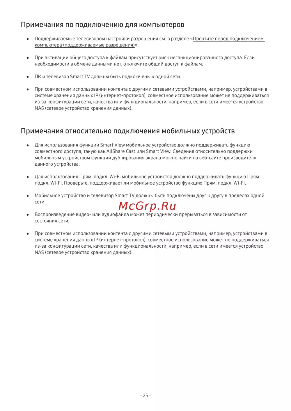 ● Для использования функции Smart View мобильное устройство должно поддерживать функцию