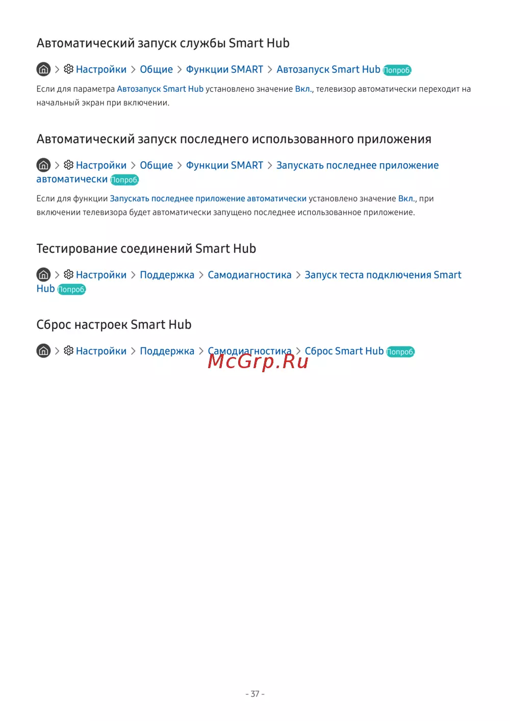 Настройки Общие Функции SMART Автозапуск Smart Hub Попроб.