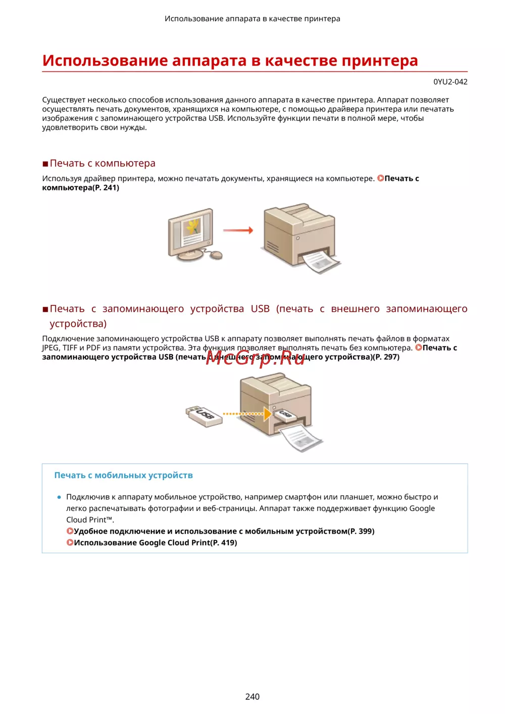 Использование Google Cloud Print(P. 419)