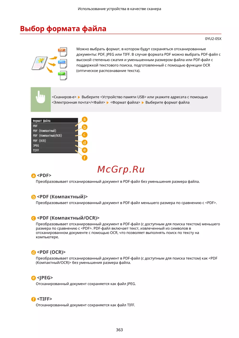 Canon i-Sensys MF416dw Лазерный \ светодиодный, Серый, Черно-белая, А4 — выбор формата файла для сканирования документов [373/949]