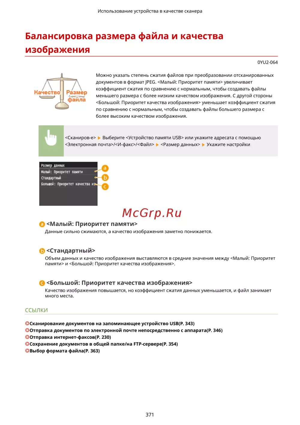Сканирование документов на запоминающее устройство USB(P. 343)