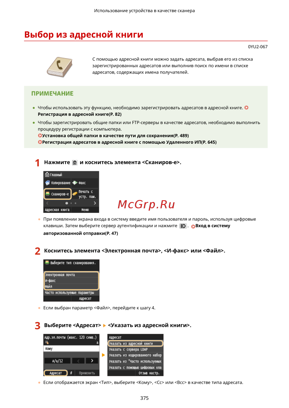 Canon i-Sensys MF416dw Лазерный \ светодиодный, Серый, Черно-белая, А4 — как выбрать адресата из адресной книги для отправки документов [385/949]