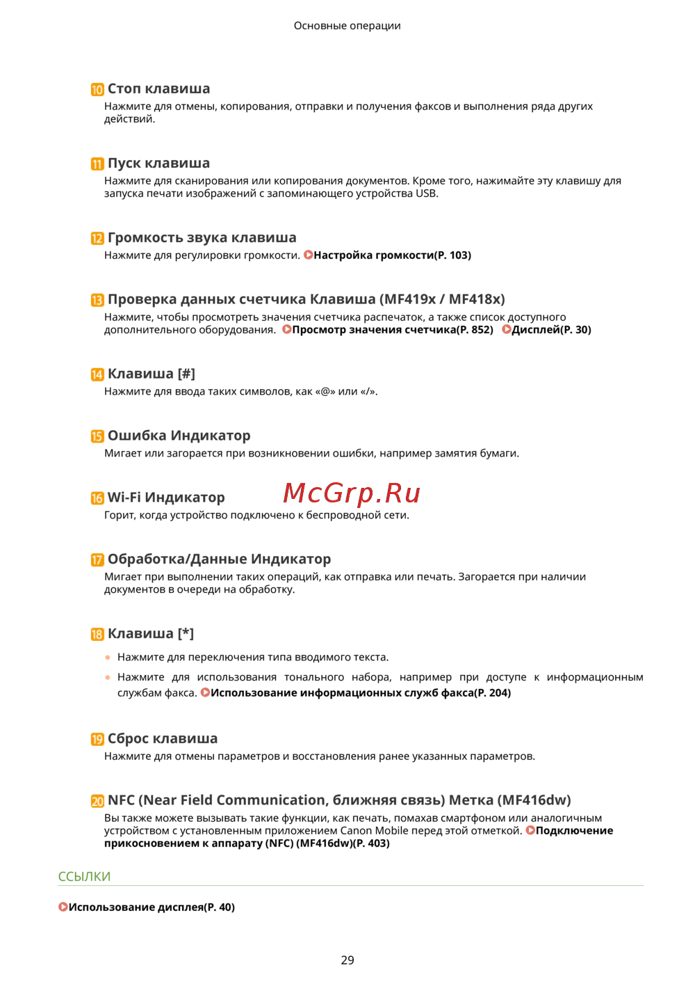 Canon i-Sensys MF416dw Лазерный \ светодиодный, Серый, Черно-белая, А4 — основные функции и клавиши управления устройством [39/949]
