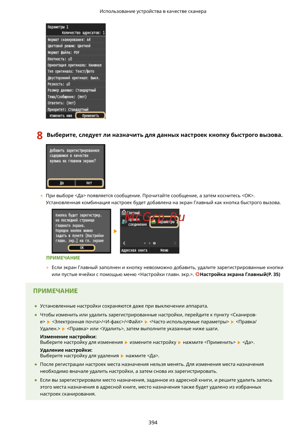 ![Canon i-Sensys MF416dw Лазерный \ светодиодный, Серый, Черно-белая, А4 [404/949] Выберите следует ли назначить для данных настроек кнопку быстрого вызова](/views2/1217126/page404/bg194.png)