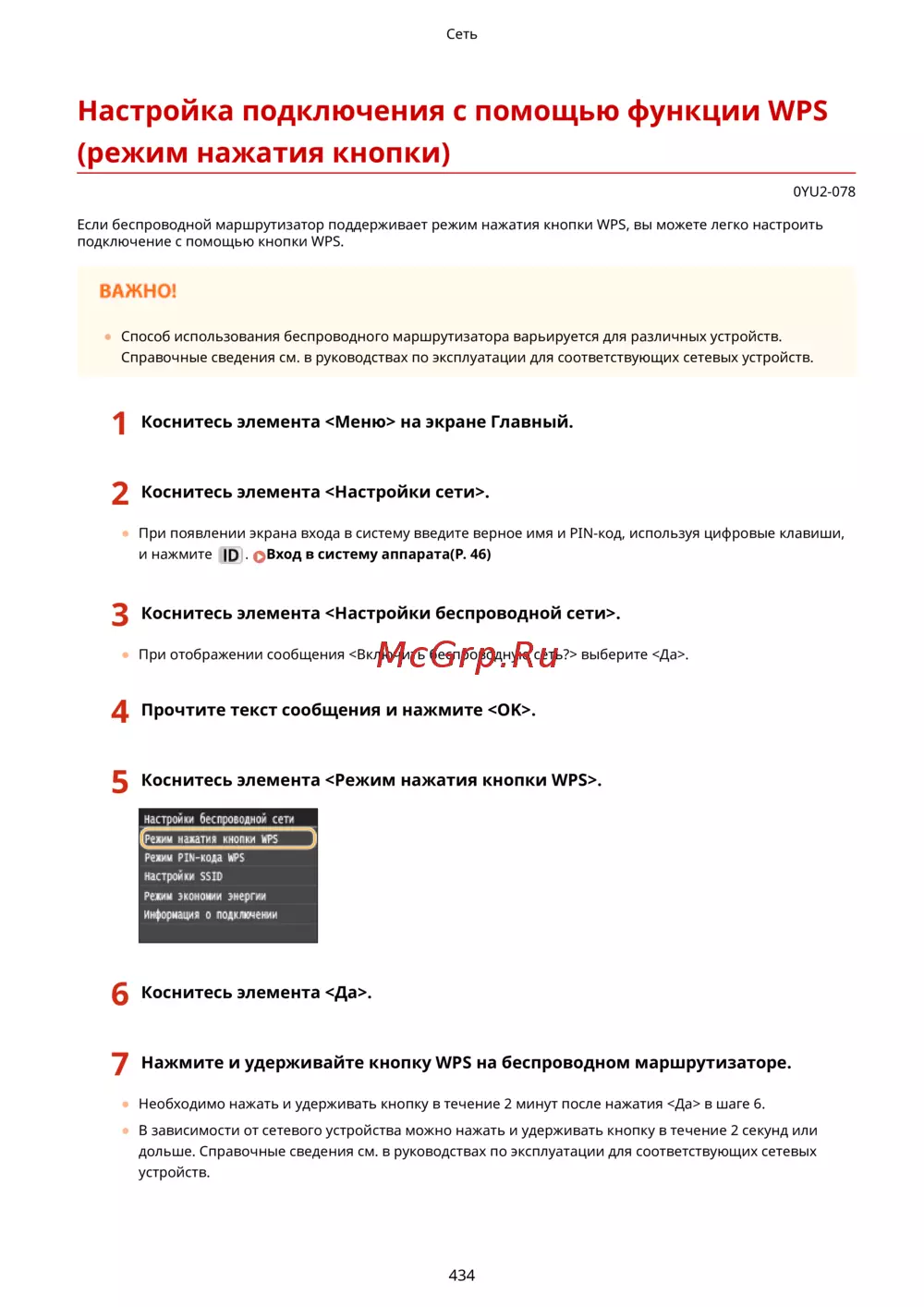 Canon i-Sensys MF416dw Лазерный \ светодиодный, Серый, Черно-белая, А4 — как настроить подключение через WPS на беспроводном маршрутизаторе [444/949]