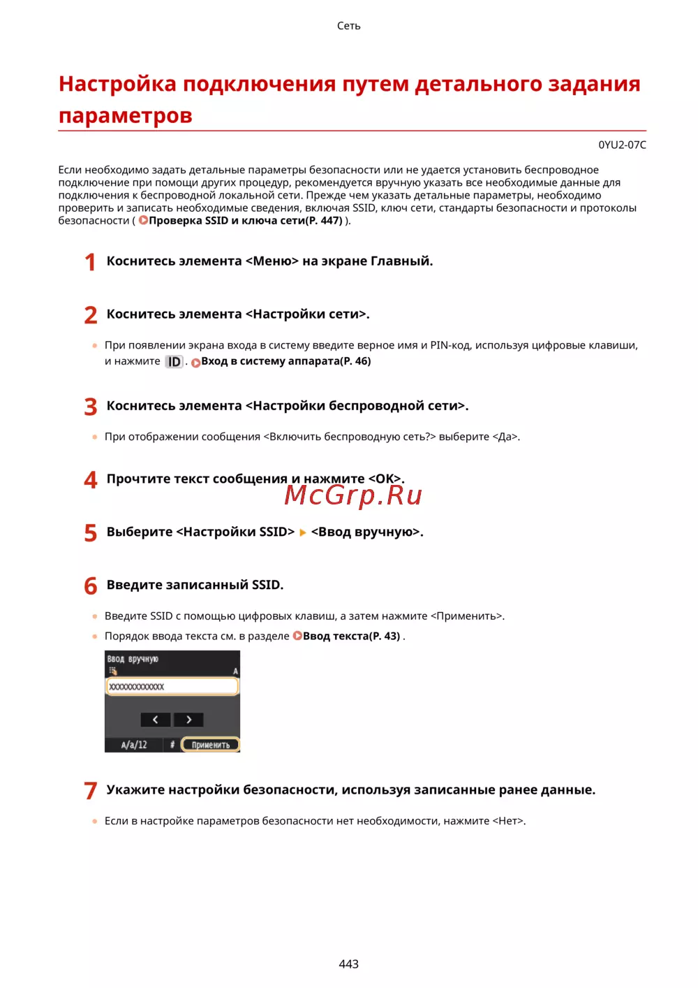 безопасности ( Проверка SSID и ключа сети(P. 447) ).